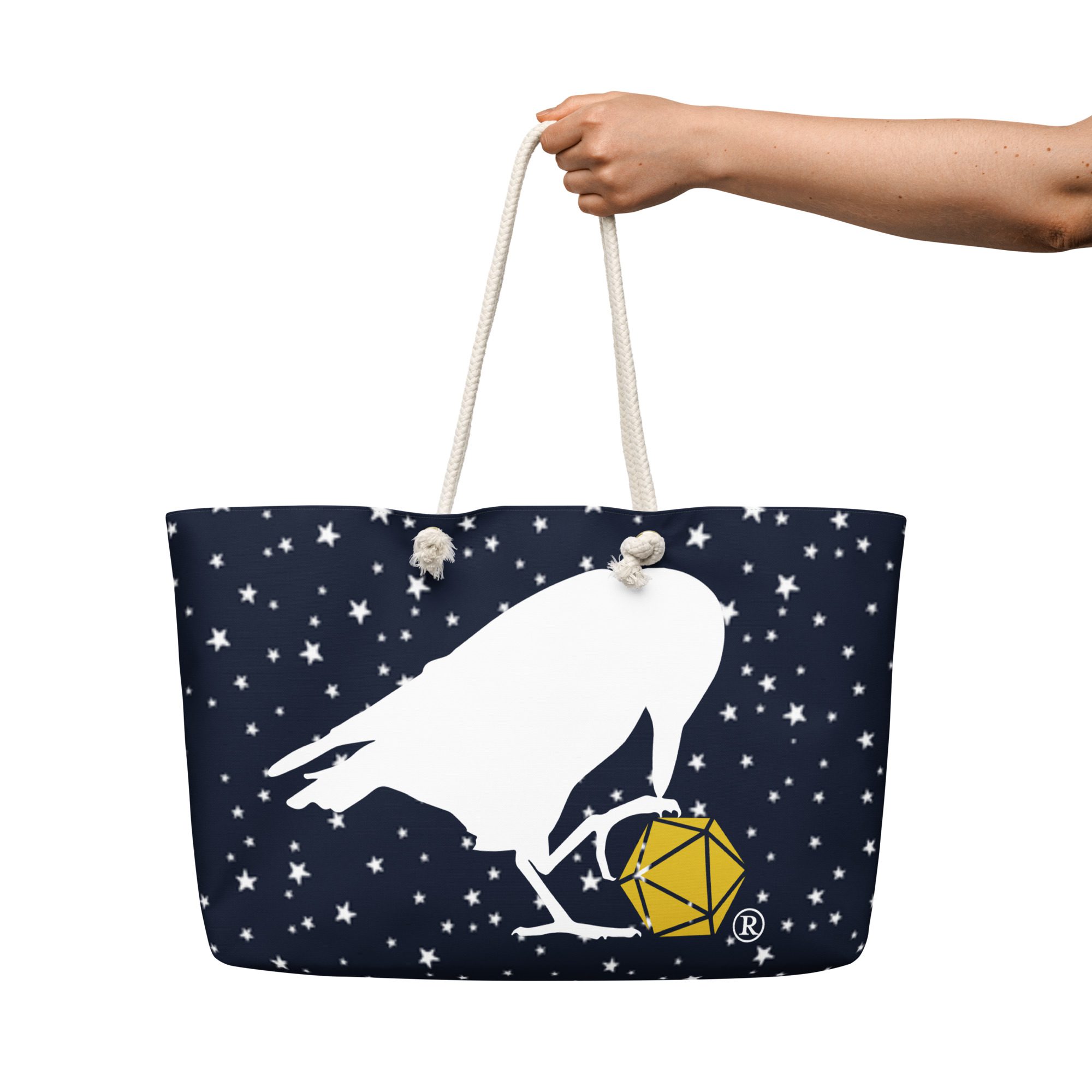 This spacious weekender has plenty of room for all of your adventuring gear and features our classic d20 Raven logo!