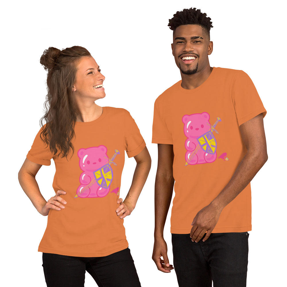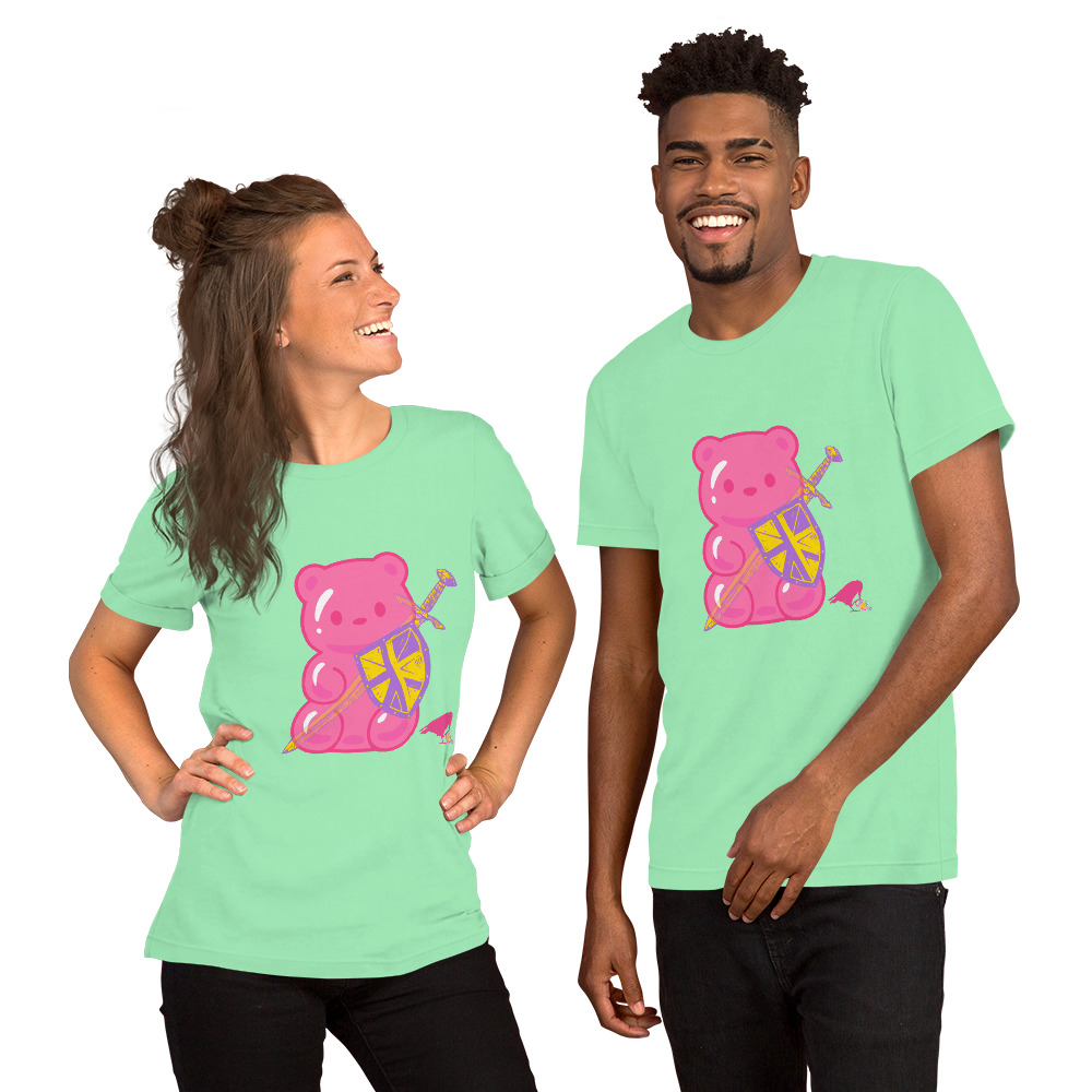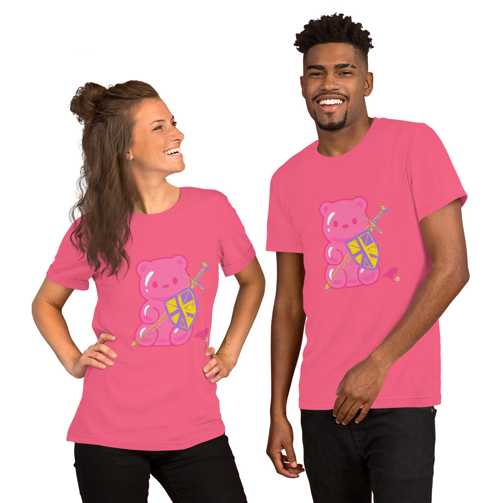This soft and colorful unisex tee features the brave and noble Pink bear from the Adventure Bear crew!