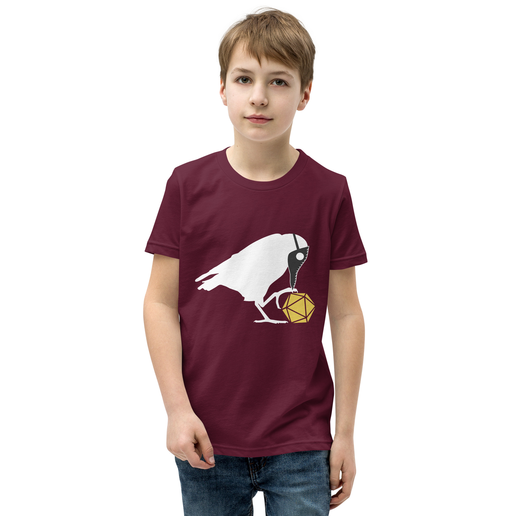 This unisex youth tee features our Plague Doctor Raven logo front and center.