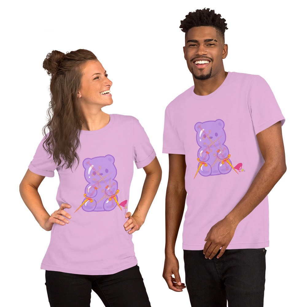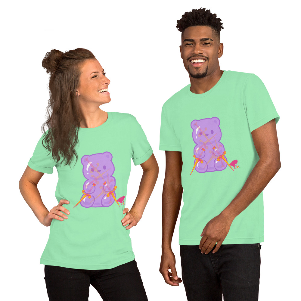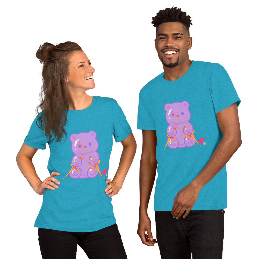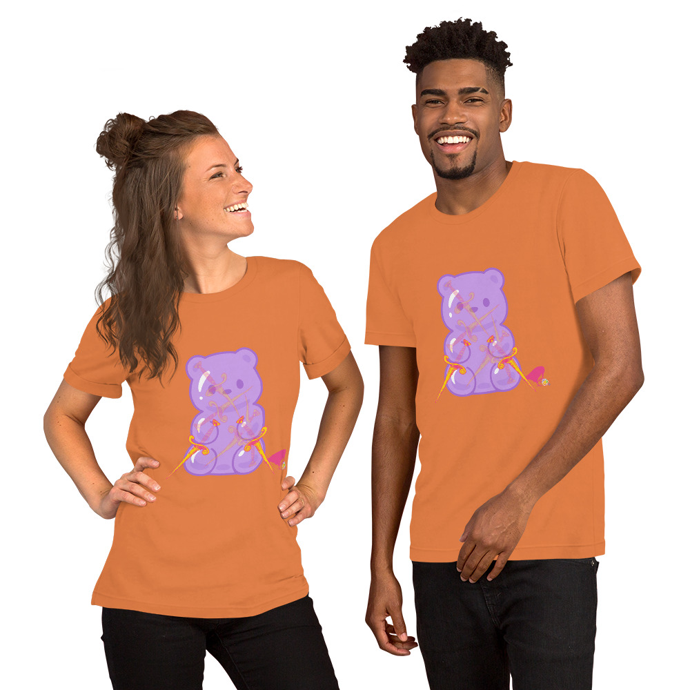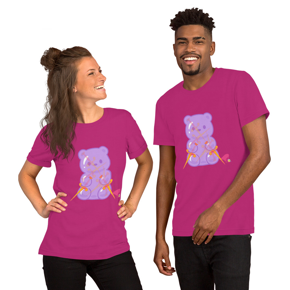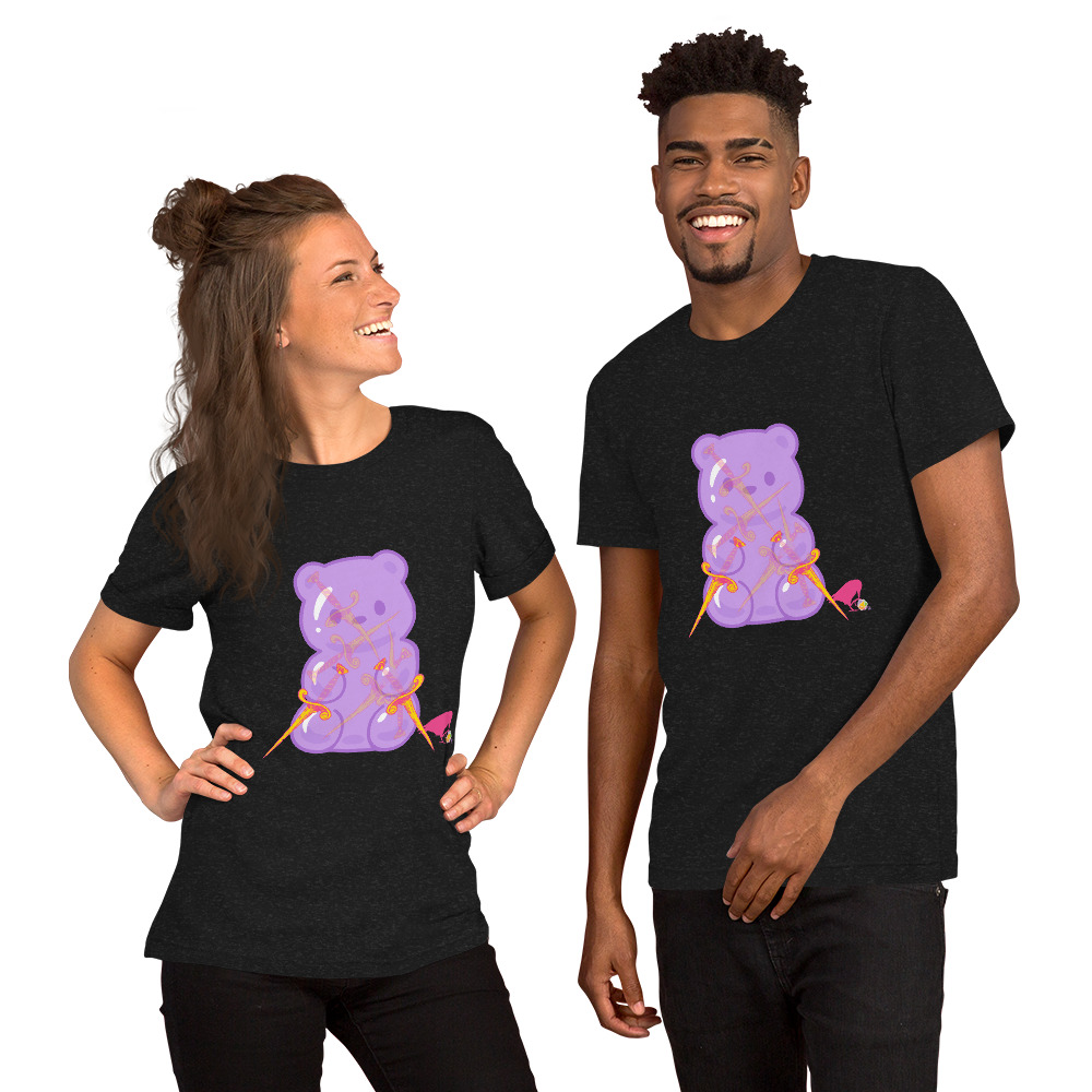 This soft and colorful unisex tee features the sneaky and stealthy Purple bear from the Adventure Bear crew!