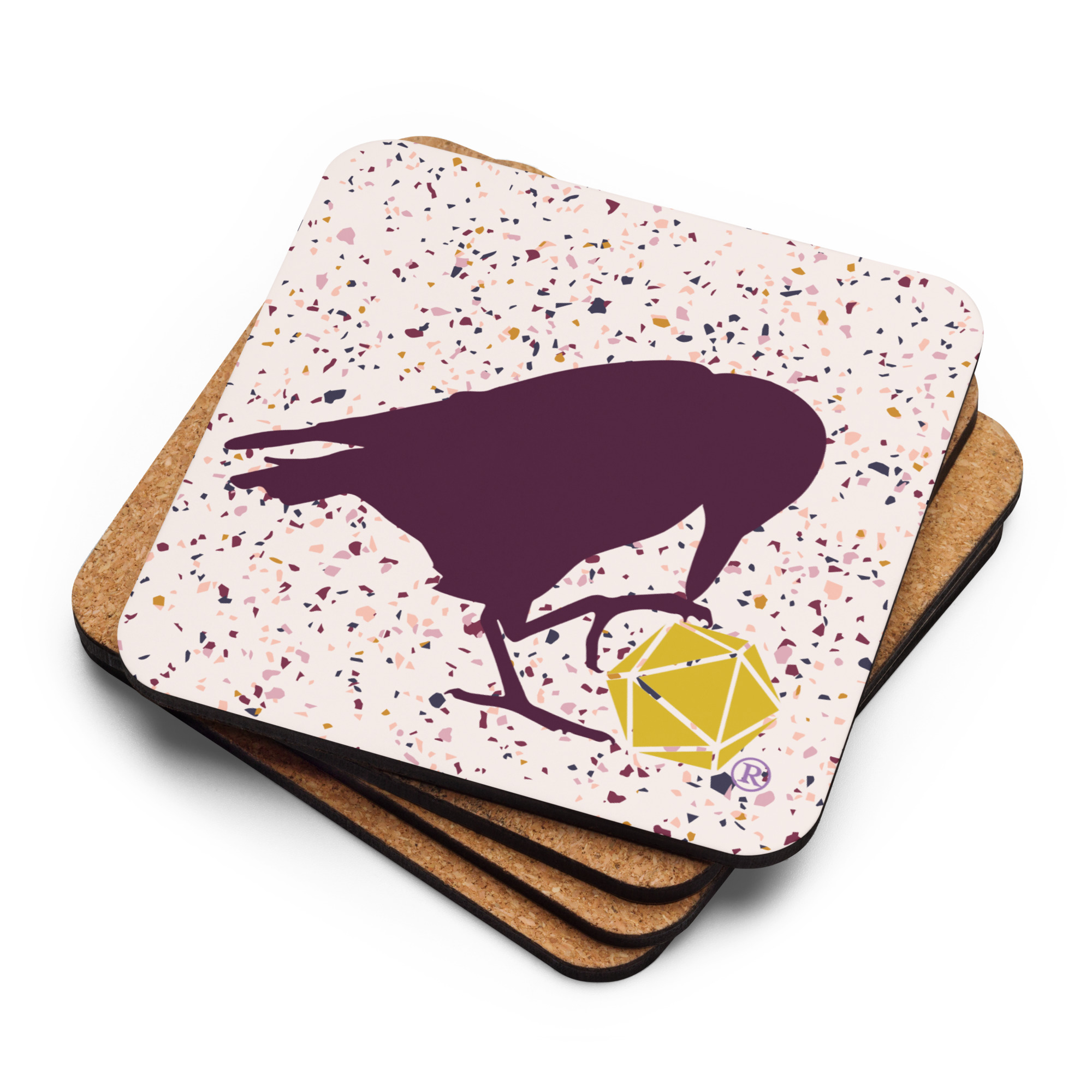 Banish beverage rings from your gaming table with this cork-backed coaster featuring our classic d20 Raven logo!