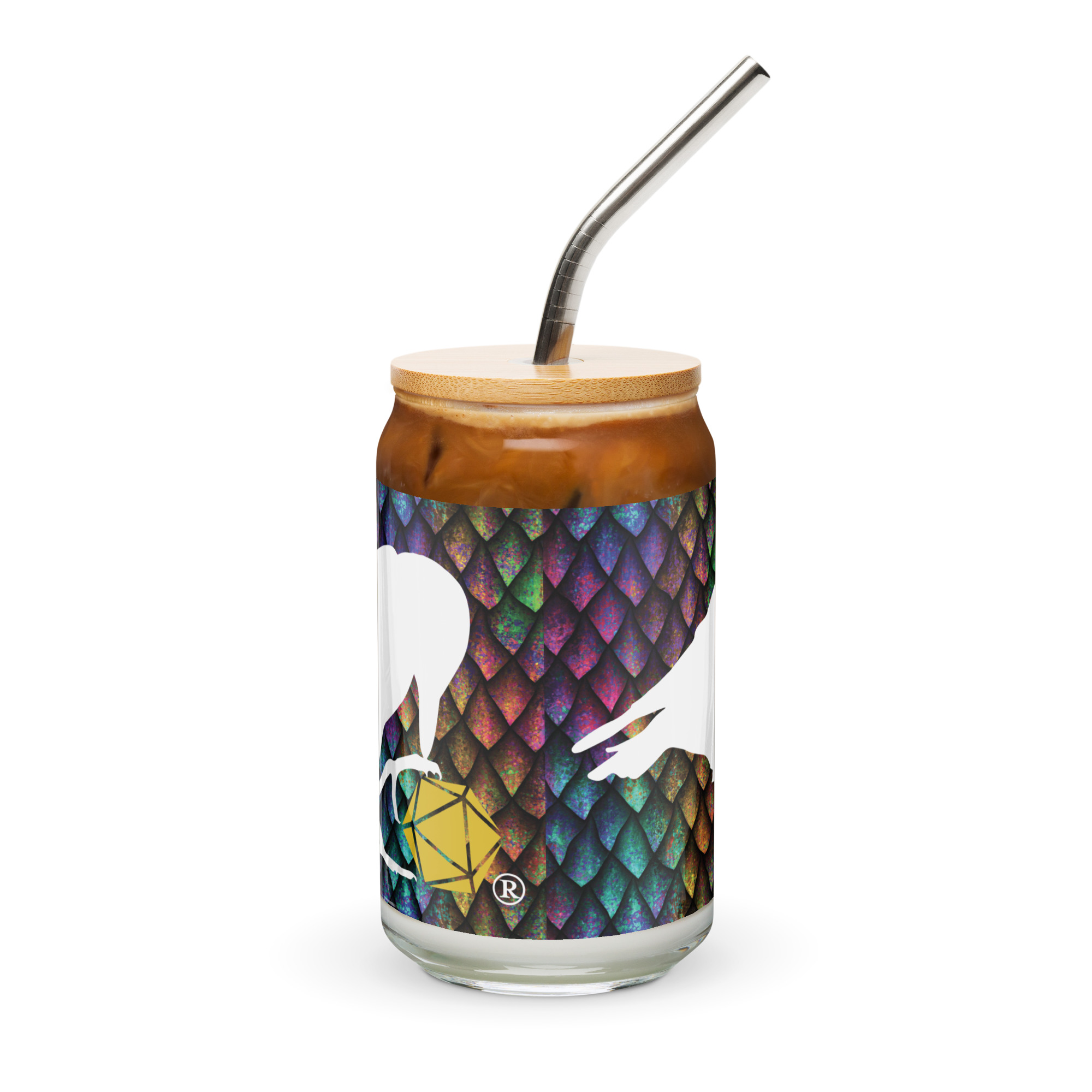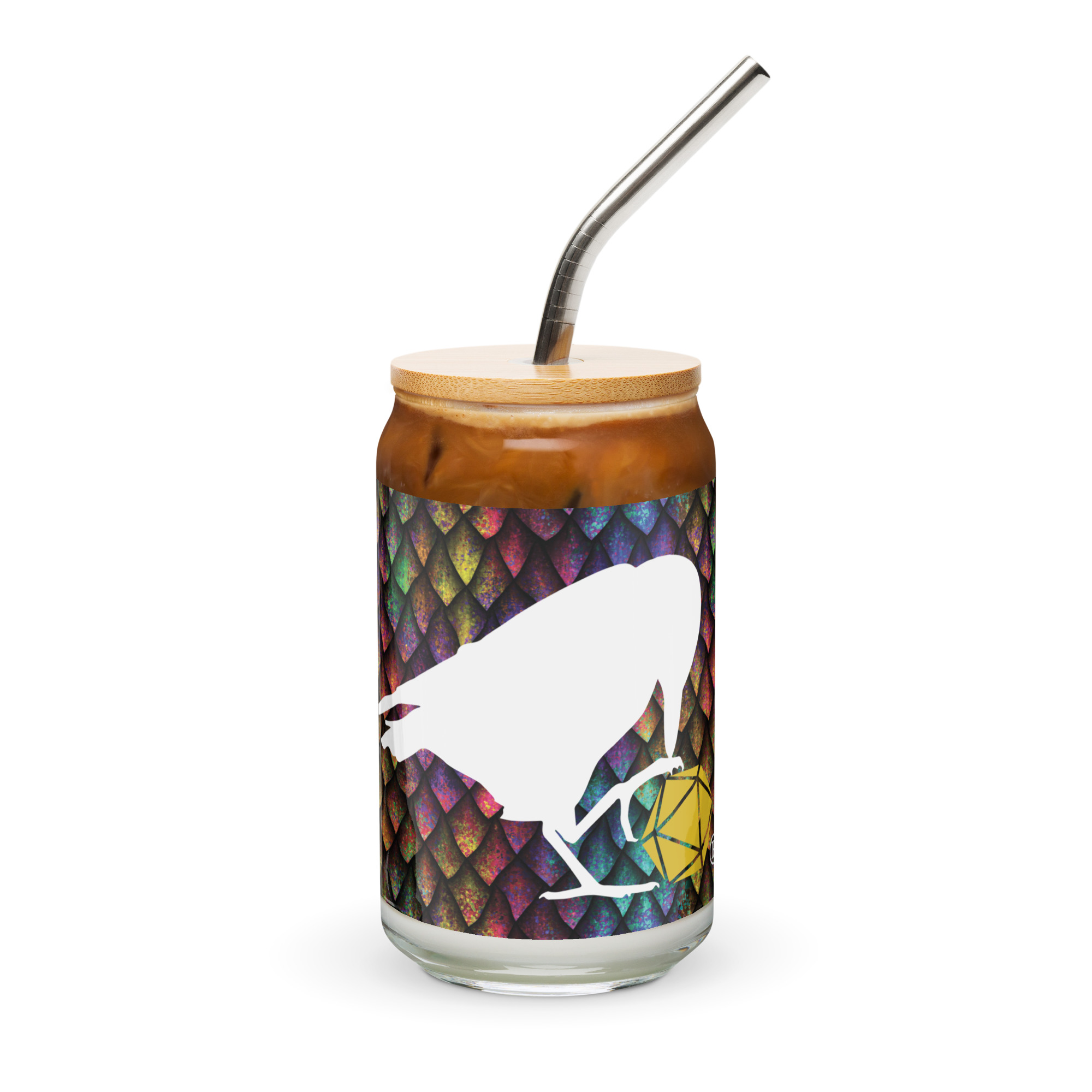 Whatever your elixir of choice, it’s sure to taste better out of this can-shaped glass featuring our classic d20 Raven logo on a gorgeous Rainbow Dragonscale background!