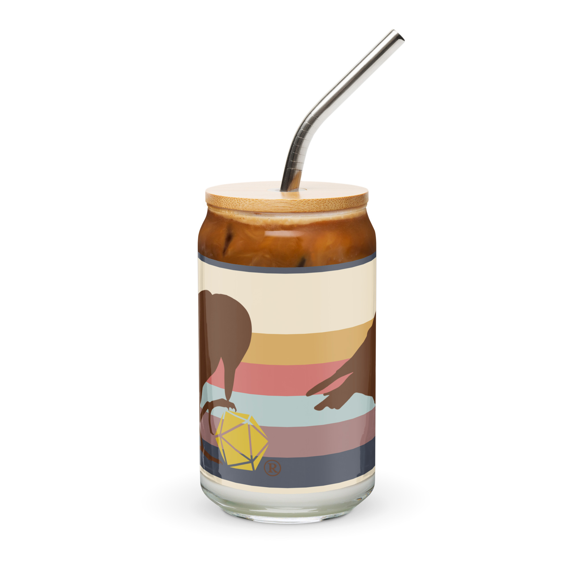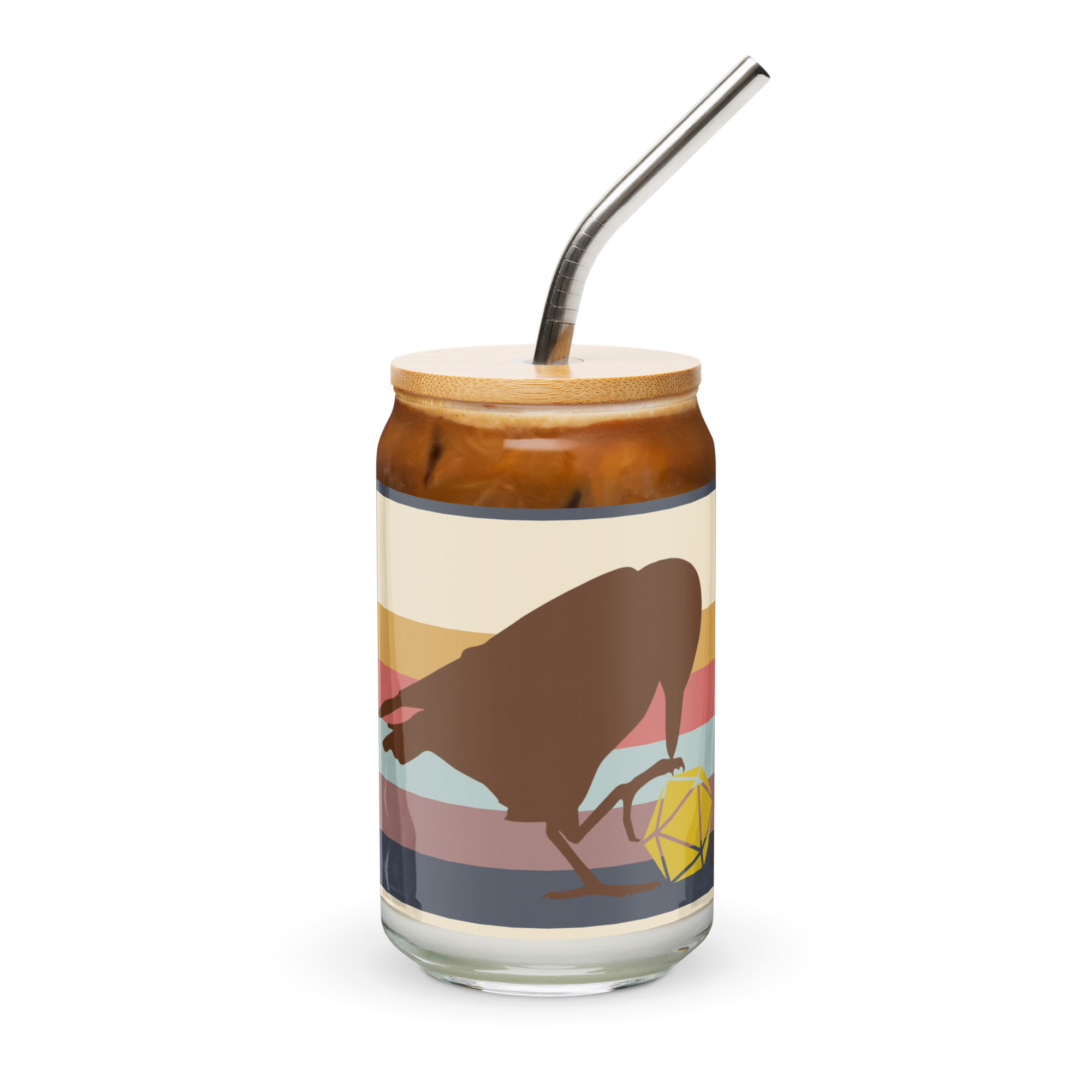 Enjoy an iced coffee or a tea out of this can-shaped glass featuring our classic d20 Raven logo!