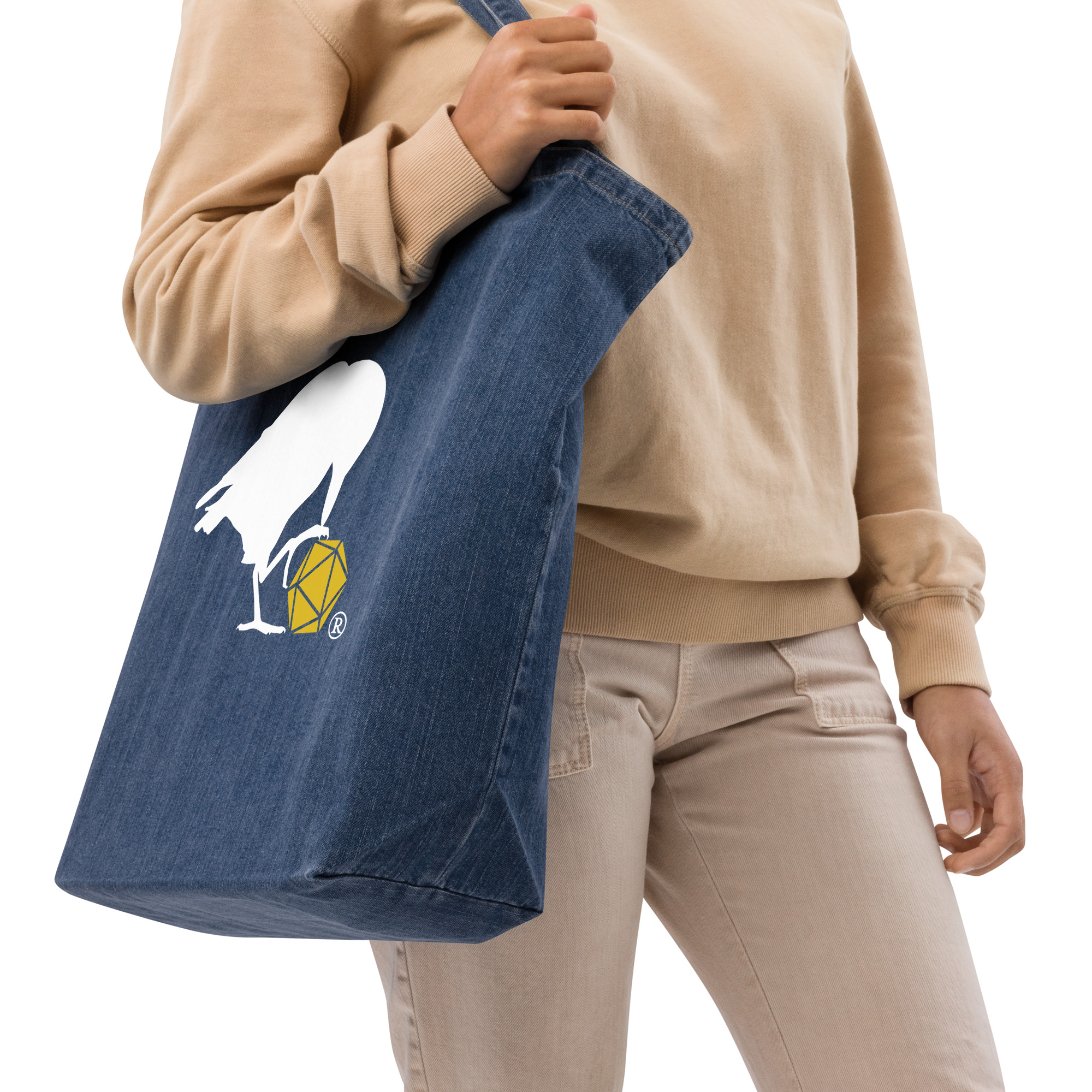 With its 30 lbs maximum carrying weight, the spacious organic denim tote bag will easily hold your books, groceries, or even gym gear. The long handles will provide extra comfort while the inside pocket will hold and hide your smaller valuables. Order it today and get carried away!